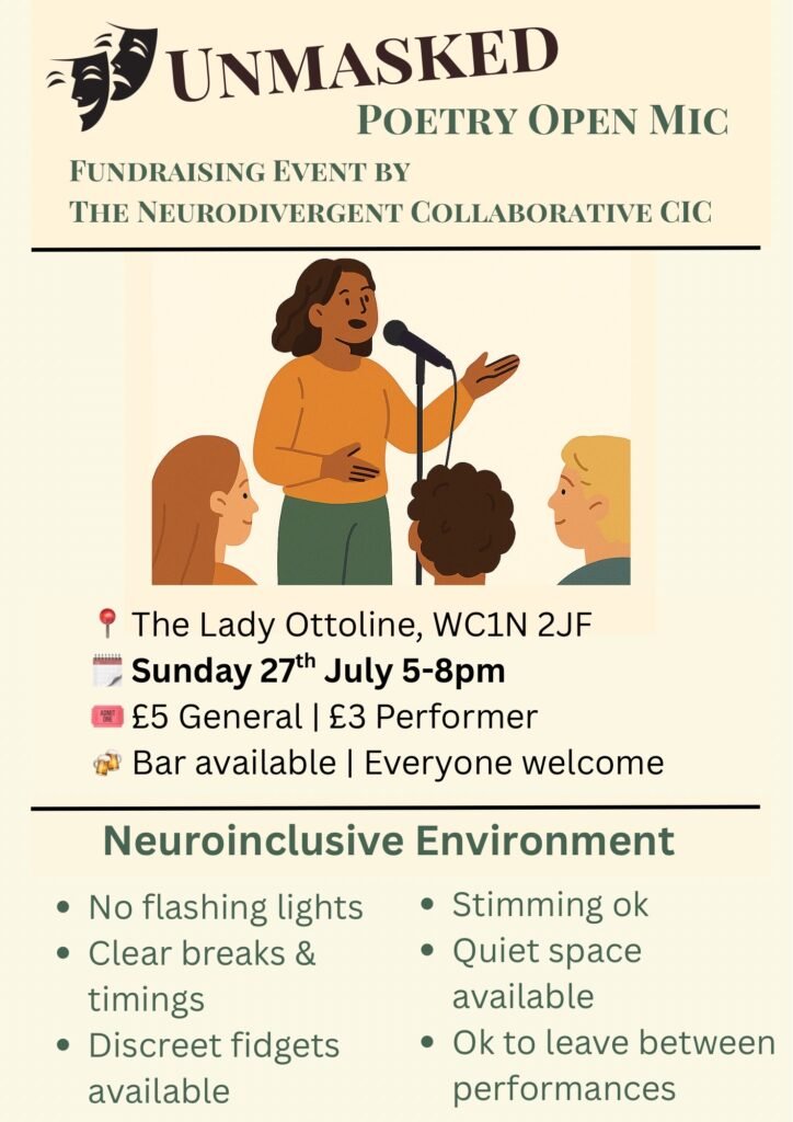 Come along and help raise funds for the Neurodivergent Collaborative CIC at their poetry open mic night!